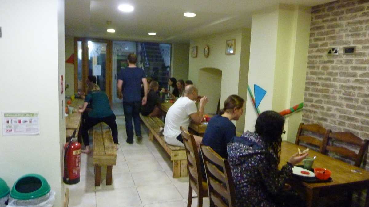 Locul: …la numărul 146, o să dai de geamurile mari ale unei vitrine ca de frizerie. Înăuntru, pentru că check-in-ul se face după orele 15, sînt mai mereu viitori locatari care abia așteaptă să urce treptele cam abrupte spre camerele de la etaj. Noi am fost repartizați la ultimul nivel, în F, un dormitor cu opt bunk bed-uri foarte spațios, în mijlocul camerei fiind loc suficient să pui și două corturi. Mari. De remarcat dotările pe care nu orice hostel le are: priză și veioză lîngă fiecare pernă și, sub pat, cușcă pe role încuiabilă cu lacăt care conține și un miniseif pentru valorile pe care le-ai putea avea cu tine.