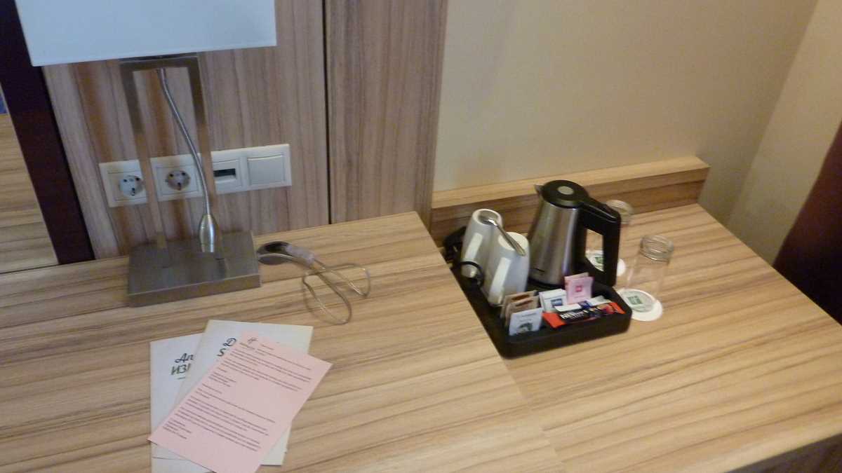 Dotările: Noaptea? Camera 503 (cum ieși din lift, imediat în stînga), care mi-a fost casă în Plovdid pentru trei zile, e spațioasă și decorată simplu, cu mult bun gust. Are mochetă groasă, pat suficient de mare cît să te trezești dimineață în alt loc față de cel în care te-ai culcat, toolkit (fierbător, căni, pliculețe) ca să-ți faci o cafea instant sau un ceai, miniseif și fier de călcat, baie complet echipată, de la prosoape și geluri de duș la cadă, uscător de păr și telefon, internet supersonic. Nu vă mint, m-aș fi mutat pentru o vreme acolo, dacă…