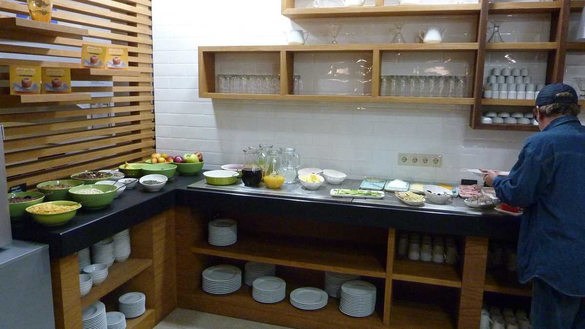 Ambianța: În seara sosirii, în zona de bar, bufet cu autoservire și mese de lîngă recepție (restaurant e cam mult spus), s-a petrecut un elegant cocktail de primire asortat sonor cu muzica de cameră a unui cvartet de coarde, atmosfera destinzîndu-se cîteva pahare de vin mai tîrziu, după ce lumea și-a mai desfăcut cravatele. Dac-ar fi fost să mă mut aici, cum mă gîndeam mai sus, asta nu mi-ar fi plăcut la locul ăsta: că, pentru un drum la bucătărie, ar fi trebuit să cobor cinci etaje și că totul e cam înghesuit. Pe de altă parte, cît stai la coadă ca să-ți pui ceva în farfurie, ai timp să socializezi cu cei din jur.