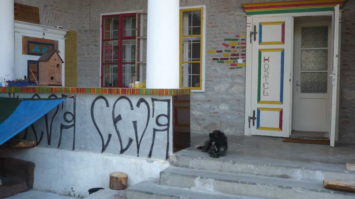 Locul: Undeva, Ceva sună destul de vag. Să fiu, deci, mai explicit: pentru a te caza în hostel-ul ăsta, trebuie să ajungi mai întîi în Deva. Apoi, în Piața Unirii, aka Traian (e mai sigur să ceri trecătorilor indicații spre Piața Traian: eu am întrebat de Piața Unirii, denumirea oficială, și am nimerit în Piața Victoriei, aka Decebal). Bun, acum ia-o pe lîngă statuia romanului din fața Primăriei, mergi vreo cîteva zeci de metri pe strada de pe partea dreaptă, aia cu restaurantul Ceapa roșie și barul Fischer’s Pub, intră în gangul ce se cască imediat după cîrciumile astea două și, voilà, ești la ușa hostel-ului. Mai exact, la poarta care blochează accesul în incintă pe timpul nopții. Deși gazda e o casă veche de vreo două sute de ani, cu încăperi mari, în special pe înălțime, Undeva, Ceva e un chiriaș foarte tînăr, care s-a mutat aici abia anul trecut.
