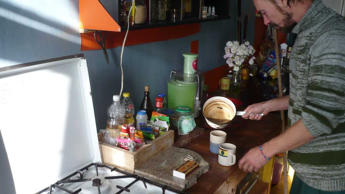 Ambianța: Hostel-ul e still under construction: pe lîngă cele două dormitoare existente de trei și cinci locuri, Adrian pregătește o extindere locativă în actuala sufragerie, care se va transforma într-un superdormitor cu paturi dispuse pe o platformă în trepte fixată de perete (mă rog, ceva – pardon, undeva-ceva – avangardist, n-am înțeles nici eu prea bine), un proiect care, odată finalizat, o să ofere o ambianță de cameră de cămin studențesc pentru pînă la 18 backpacker-i. Să nu uit: înainte de culcare, e recomandat să faci o vizită în Fischer’s Pub, cu care Undeva, Ceva are o relație de colaborare, și să bagi o bere de somn ușor. De fapt, chiar mai multe, de somn greu: altfel, clopotele bisericii de peste drum și trăncănitul containerului mașinii salubrității îți vor da o deșteptare foarte matinală.