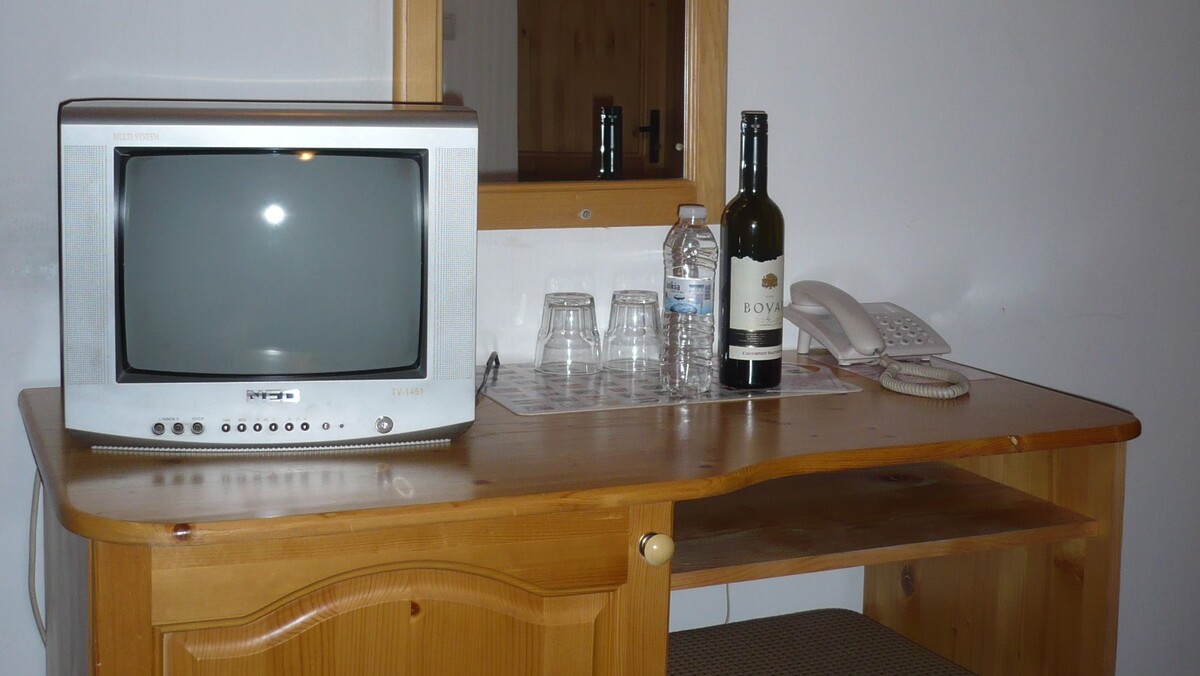 Dotări: Douăzeci de camere cu TV, duș și balcon cu vedere spre vîrfurile înzăpezite ale Munților Pirin. Acces gratuit la saună și net (ambele cu servicii la fel de lente).