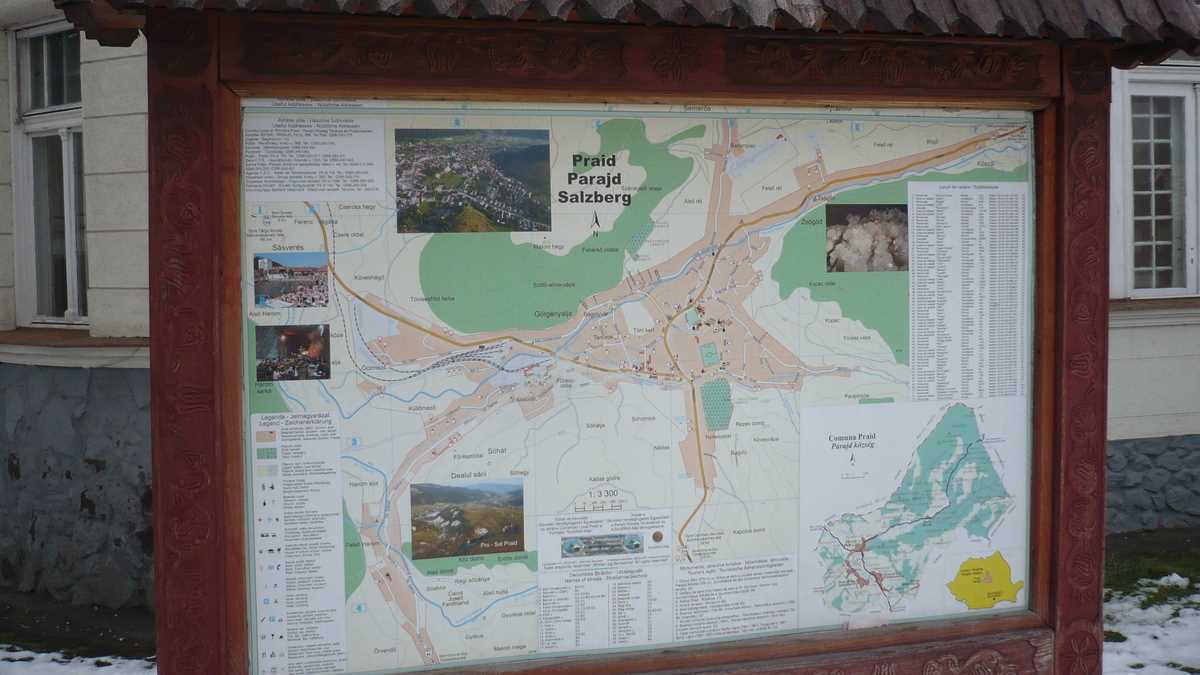 Adresa: Hotel Parajd, Praid, județul Harghita, peste drum de Poștă, la vreo două sute de metri de intrarea în mina de sare. Altitudine aprox. 550 m.