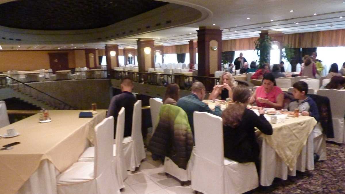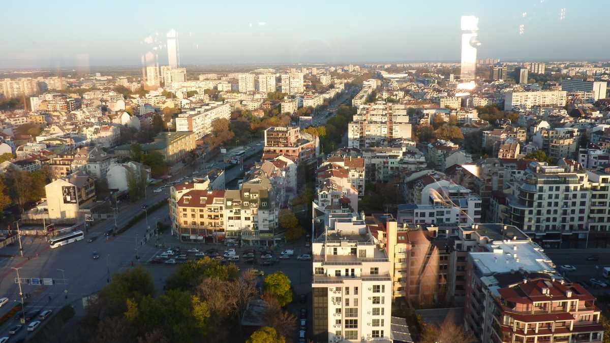 Ambianța: Dineul de gală cu program folcloric bulgăresc din ultima seară s-a ținut în restaurantul de la parter cu intrare din holul în care e parcat Harley Davidson-ul patronului. Înainte de plecare am urcat cu liftul pînă la ultimul etaj (22): călcînd cu grijă prin șantierul care construiește clubul White Nights, mi-am lipit nasul și lentila de geamurile de pe ambele părți ale viitorului bar de noapte de sub acoperișul hotelului, pentru niște poze ale orașului de la peste 50 de metri altitudine. Pînă la apariția în zonă a stripteuzelor, asta e deocamdată singura atracție a locului.