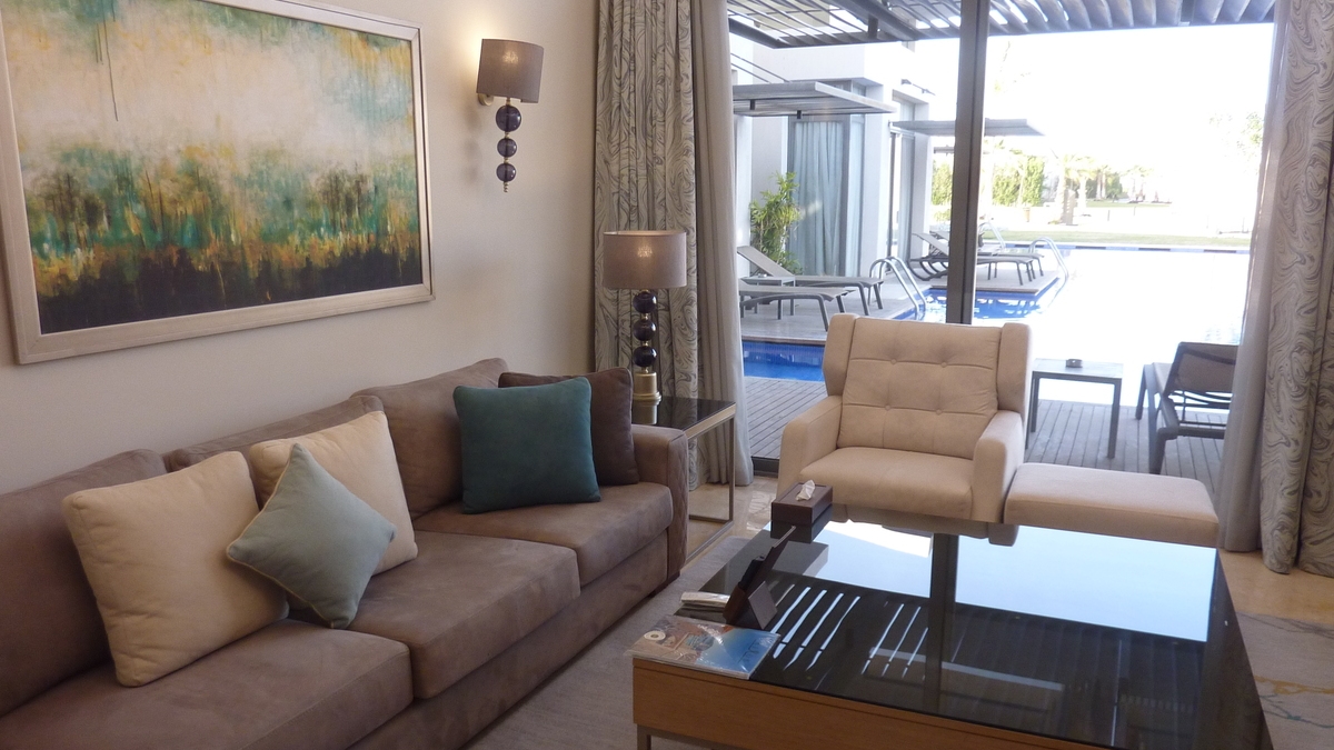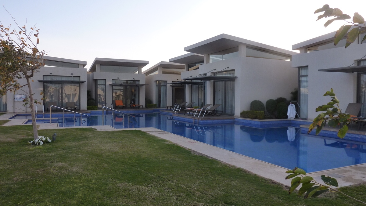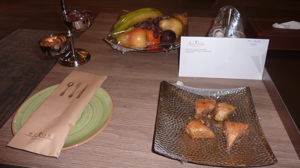Primul contact cu o cazare premium a avut gust de cocktailuri reci și sunet de muzică de cameră, în recepția Rixos Premium Magawish Suites and Villas, pe numele lui complet, turnat în litere aurii pe firma de la intrare. Cel mai nou (finalizat anul trecut) și mai luxos dintre toate cele la care am stat, Rixos e un resort de căsuțe și vile destul de întins, prin care, dacă ți-e lene să te deplasezi pe jos, poți aștepta pe aleea dintre clădiri una dintre mașinuțele de golf cu mai multe locuri care te duc, din 15 în 15 minute, de la recepție la cameră și de la plajă la restaurant. Dacă tot am ajuns la masă, trebuie neapărat menționat că oferta bufetului de la mic dejun, prînz și cină e atît de extinsă și de variată că poate da în indigestie: ar trebui să ai stomacurile lui Pantagruel și Flămînzilă la un loc, ca să guști din toate cîte-ți poți servi în farfurie, de la fructe de toate felurile, inclusiv de mare, la brînză mucegăită și sushi. Nu mai pomenesc de cele vreo cinci à la carte-uri, de minibarul din cameră inclus, de Jack Daniel‘s-urile și Hennessy-urile pe care le poți comanda fără frica notei de plată (majoritatea hotelurilor egiptene practică o variantă de all-inclusive în care băuturile alcoolice din meniu sînt doar locale, cele de import fiind contracost) sau de manejul în care poți călări sau doar hrăni cu morcovi căluții. În concluzie, un ultra all-inclusive pe opulență și barosăneală, cum se exprima un blogger, invitat și el, probabil, ca să testeze saltelele din camerele vizitate cu grupul.