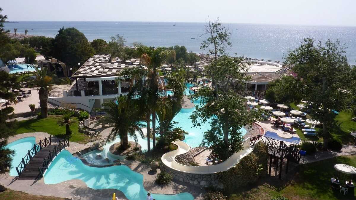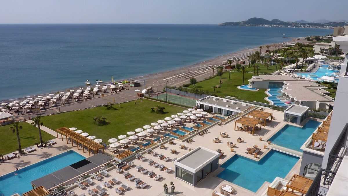 Dotările: Recepții și lobby-uri spațioase, cu suprafețe vitrate imense, decorate modern, conectate cu terase-esplanadă și holuri lungi transformate în expoziții de artă sau galerii comerciale. Restaurante de dimensiunile unei cantine studențești de campus important cu vitrine calde/reci, în care mănîncă în același timp, în regim bufet, sute de oameni sau săli de patru mese à la carte, cu specific foarte divers, de la autohton la italian, mexican, arăbesc, asiatic, în care chelnerul îți recită meniul la ureche. Piscine infinity cu acces direct din camera de la parter sau despărțite prin panouri de sticlă mată de privirile indiscrete ale trecătorilor de pe stradă. Duble cu masă și scaune în balcon sau apartamente la ultimul etaj cu mini-gym pe terasă. Plaje cu nisip fin sau cu pietricele cît medaliile olimpice la înot, șezlonguri cu umbreluțe clasice sau foișoare-separeu în care te bronzezi ascuns după pînzele draperiei. De toate am văzut în periplul nostru rodosian, inclusiv un complex de hoteluri din același grup unite printr-un pasaj suprateran peste șosea, în care transferul între clădirile-bungalow cu gazon în față se face cu vehicule electrice, ca pe terenurile de golf, și chiar o mini-expoziție de mașini și motociclete de epocă, etalate în lobby (exemplare din colecția de jucării auto/moto a patronului, cel mai probabil).