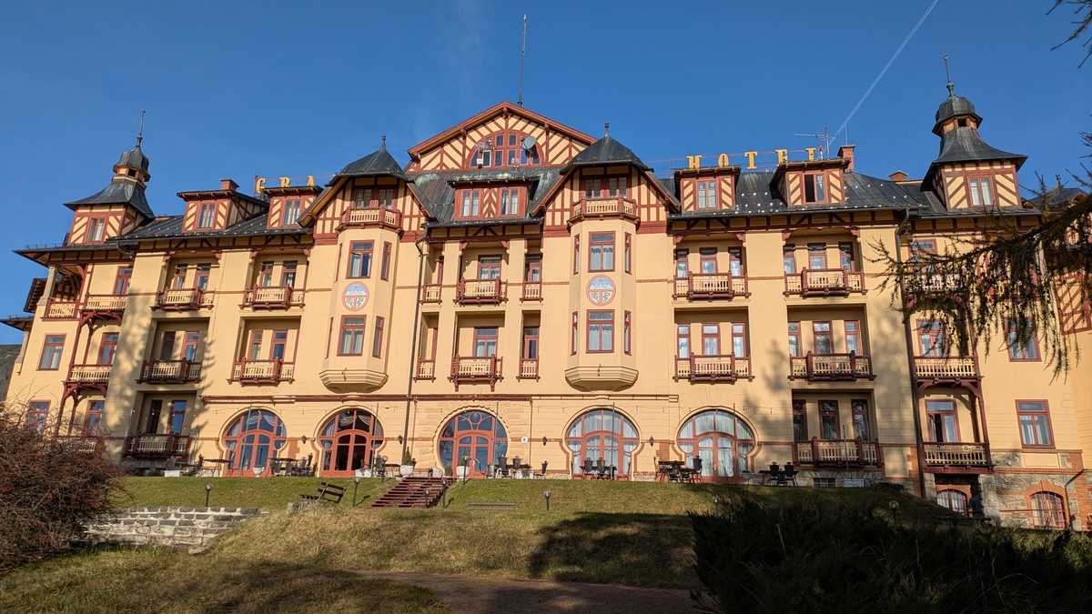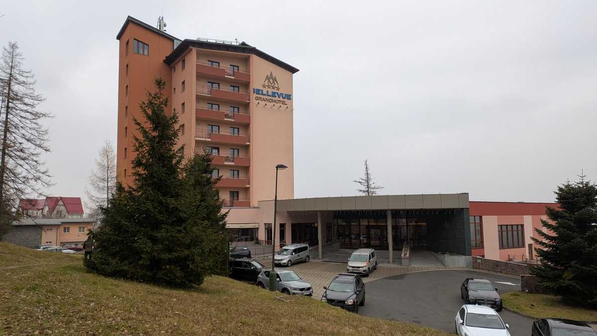 La Grand Hotel Bellevue, situat chiar la intrarea în Starý Smokovec, era să facem check-in din greșeală, dintr-o confuzie a adresei. Am revenit, două zile mai tîrziu, invitat chiar de director, un tînăr prietenos, cunoscut la cina de la Hrebienok, care ne-a plimbat prin hotel și ne-a prezentat toate dotările, de la sala de squash și pista de bowling din subsol la camera video de pe acoperiș care transmite live, non-stop, imagini cu stațiunea tuturor celor interesați.