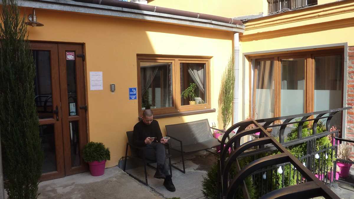 Locul: Ales de pe lista hostel-urilor relativ centrale, Kaktus îți face cu ochiul prin ferestrele fațadei galben-bostan de deasupra gardului din zid gros în care s-au spart două găuri închise cu porți din tablă, una mare, pentru mașini, alta mică, pentru oameni. După ce ți se răspunde la buzz-ul interfonului cu clinchetul zăvorului automat, urci scara exterioară cu balustradă metalică pînă pe balconul-terasă de la etajul clădirii vechi, care, renovat recent, arată foarte bine, și intri într-o sufragerie văruită colorat și mobilată Ikea style. Dacă de după tejgheaua recepției-bar te privește ușor sictirit un puștiulache blond care vorbește puțin, repede și neinteligibil, înseamnă c-ai dat ca și mine peste același tip cam arogant și necomunicativ, posesor al unei engleze stricate din fabrică, adică din școala pe care nu pare c-a terminat-o încă.