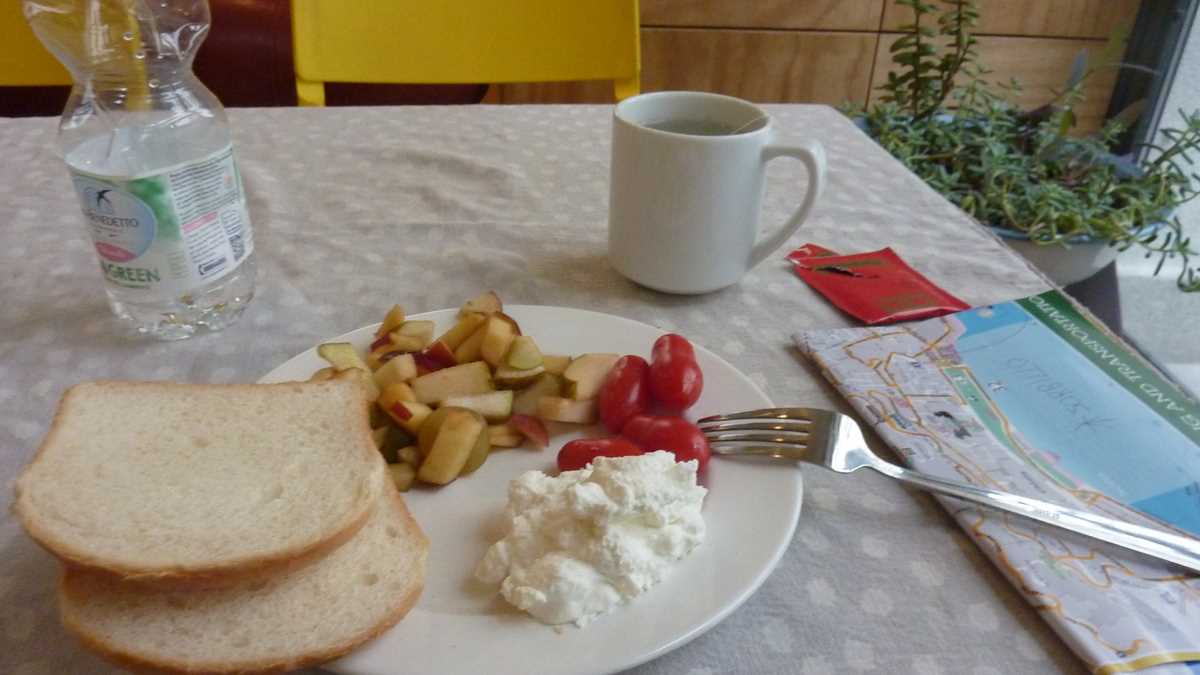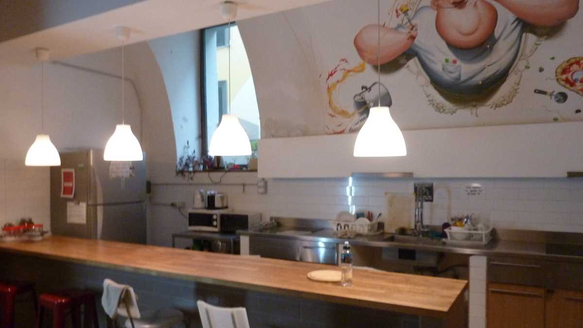 Prețurile: Pe lîngă cei 12 euro plătiți deja cu cardul, de-acasă, pentru patul cu mic dejun inclus (brînză, roșii cherry, salată de fructe – cam asta mi-am tras în farfurie din oferta de pe barul lung, tejghea între zona de gătit cu frigider, cuptor, chiuvetă și cea de mese), am mai lăsat gaj, în schimbul lacătului de dulap și cardului de deschidere a ușii, o bancnotă de 10 euro…