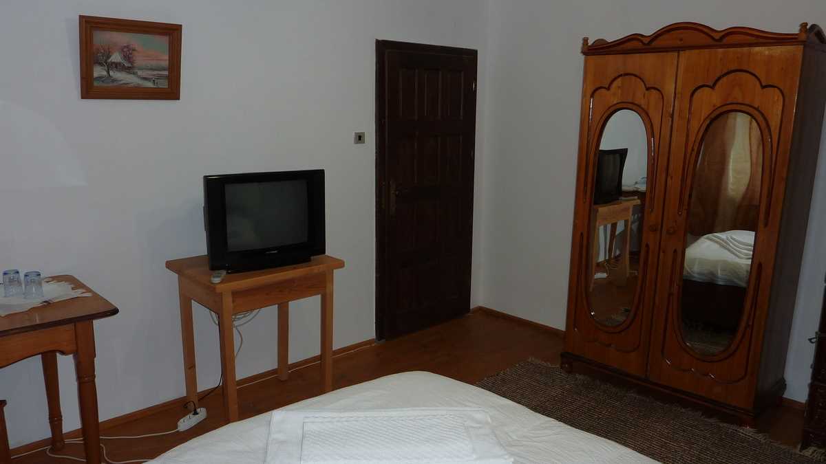 Dotări: Am fost cazat în clădirea principală, la etaj, într-o cameră simplă, mobilată standard pentru o pensiune de munte – pat, noptiere, dulap pentru haine groase, măsuță cu pahare și carafă pentru apă/lapte(/vin?) – și baie cu duș, alăturată. A, există și un televizor, pe care nu l-am deschis, nici măcar de curiozitate: am preferat să ies în balcon, la emisiunea de vizionat munți și ascultat păsărele.