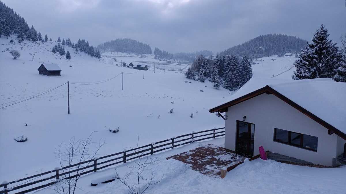 Locul: După ieșirea din șoseaua națională, ne aștepta un drum îngust, ca de căruță, acoperit cu o zăpadă proaspăt așezată pînă la gleznă – testul suprem al cauciucurilor de iarnă montate (inutil) pentru troienele din București. N-a fost nevoie decît de un singur derapaj în decor, pînă în curtea proprietății. Acolo de unde oaspetele este îndrumat spre cazare în clădirea principală, care are sală de mese la parterul cu pereți din geam și camere mari cu balcoane de belvedere, la etaj, în căsuța limitată în înălțime ca să nu dăuneze panoramei și în viluța cu sufragerie-bucătărie open space pe verticală, pe lîngă scara de lemn care unește ambele niveluri. Sau în căsuța din copac plină cu jucării, în care-ar rămîne pînă la plecare juniorii. În total, vreo 25 de locuri în diferite configurații, și pentru cupluri cu copii mici, și pentru două familii prietene, și pentru proaspăt îndrăgostiții care caută intimitate.