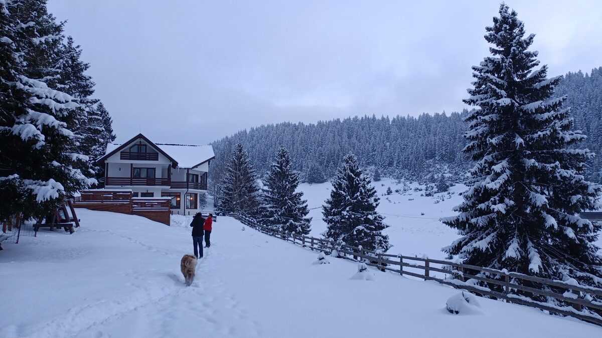 Locul: După ieșirea din șoseaua națională, ne aștepta un drum îngust, ca de căruță, acoperit cu o zăpadă proaspăt așezată pînă la gleznă – testul suprem al cauciucurilor de iarnă montate (inutil) pentru troienele din București. N-a fost nevoie decît de un singur derapaj în decor, pînă în curtea proprietății. Acolo de unde oaspetele este îndrumat spre cazare în clădirea principală, care are sală de mese la parterul cu pereți din geam și camere mari cu balcoane de belvedere, la etaj, în căsuța limitată în înălțime ca să nu dăuneze panoramei și în viluța cu sufragerie-bucătărie open space pe verticală, pe lîngă scara de lemn care unește ambele niveluri. Sau în căsuța din copac plină cu jucării, în care-ar rămîne pînă la plecare juniorii. În total, vreo 25 de locuri în diferite configurații, și pentru cupluri cu copii mici, și pentru două familii prietene, și pentru proaspăt îndrăgostiții care caută intimitate.