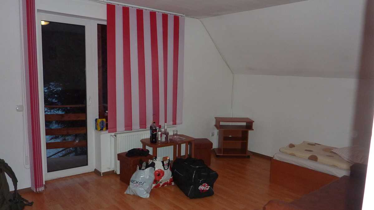 Prețuri: 180 de lei apartamentul, 100 de lei camera lui Leti și Laurette. Dacă ne îngrămădeam nițel, am fi încăput cu toții doar în apartament, compus din dubla cuplului Iulia-Alex și sufrageria alocată mie, care, pe lîngă pat, mai are o canapea extensibilă și niște fotolii (aș fi fost bucuros de oaspete, vă dați seama). Vara, capacitatea de cazare s-ar putea mări prin amplasarea de hamacuri în balconul care a avut doar rol de frigider pentru singura fumătoare a grupului.