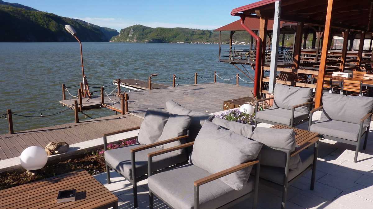 Dotările: …pe lîngă terasa cu vedere la fluviu sau debarcaderul de plecare/sosire a ambarcațiunilor croazierei la Cazane, au în ofertă și o atmosferă caldă, de casă de prieteni (Pensiunea Mai Danube, Cabana Alegria), jacuzzi și piscină (Riviera 990), apartament la ultimul nivel, spa și mini-gym gata de inaugurare (Vila Casa9), restaurant elegant (Pensiunea Sunshine), sală de evenimente cu capacitate de 250 de persoane (Pensiunea Danubia), loc de joacă pentru oaspeții juniori (Partizan Resort) sau ponton mobil cu sălcii veritabile, nu din plastic, pe care cuplurile îndrăgostite pot fi servite cu o cină romantică (Pensiunea Septembrie). Și pe care, dacă nu eram deja cazat în camera 6 a pensiunii care arată ca un hotel de patru stele, aș fi pus cortul unor nopți în natură.