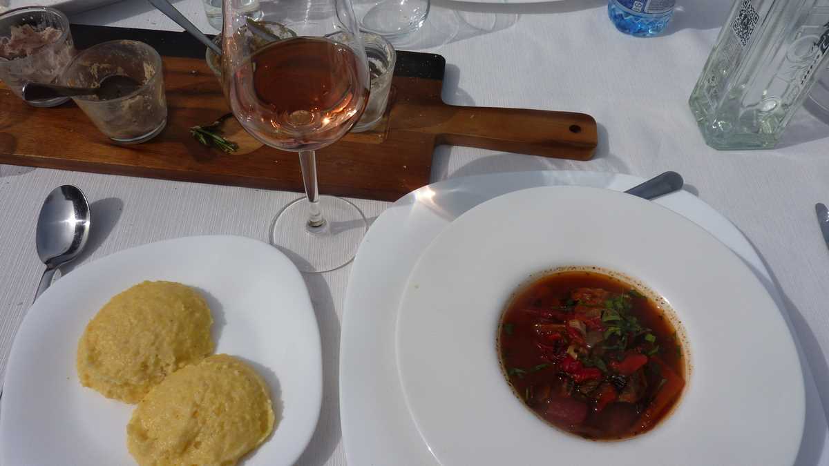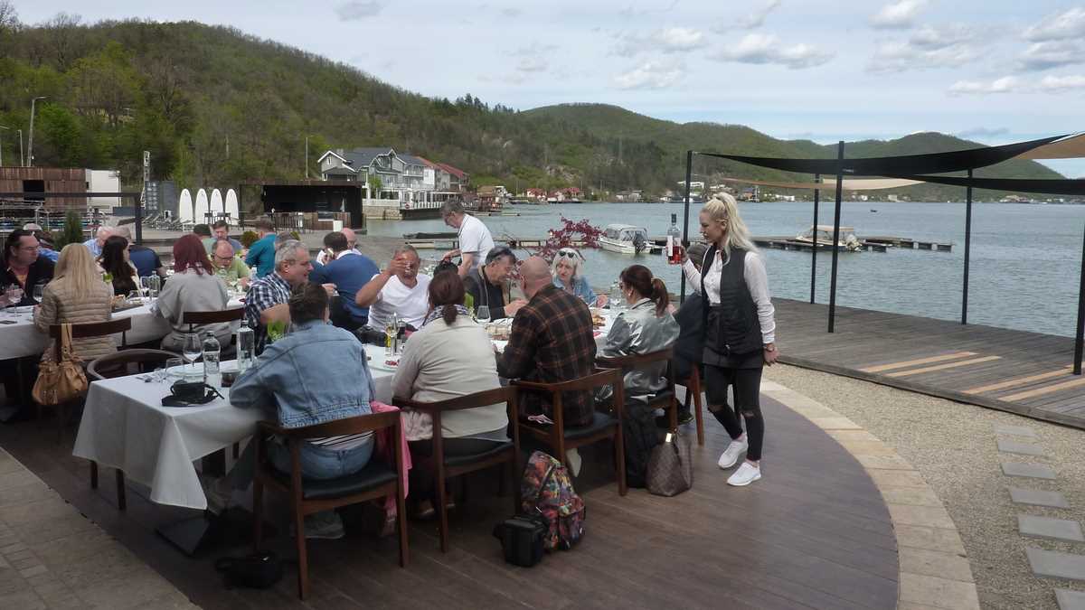 Ambianța: …condițiile de cazare și serviciile la nivel european ale acestei Riviere românești la Dunăre, care se remarcă și prin calitatea preparatelor culinare (mic-dejunurile și prînzul de la Septembrie și cinele de la Mai Danube și Sunshine ne-au convins de asta – Sărut mîna pentru masă!), în memoria papilelor gustative rămînînd multă vreme mai ales specialitatea locală, parfumata țuică de smochine. Atmosfera aproape mediteraneeană a cazărilor și meselor de lîngă apă amintește de modelul grecesc patentat de patronii de tavernă și pentru că fiecare dintre proprietarii acestor pensiuni e prezent și implicat în managementul micii sale afaceri turistice, putînd oricînd personaliza experiența oaspeților. Nu veți da aici peste mutrele acre și pasivitatea angajaților plictisiți și demotivați din stabilimentele cu sute de camere ale turismului angro.