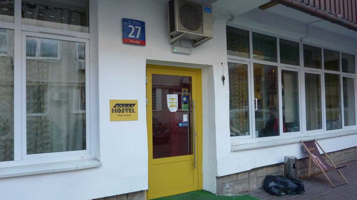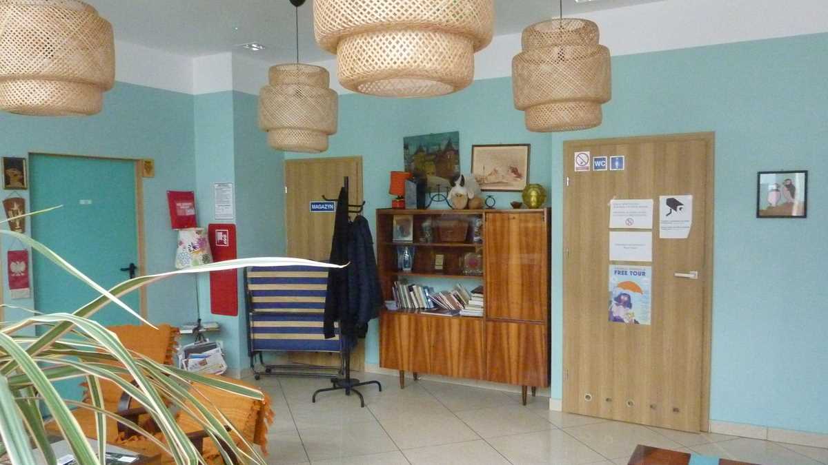 Locul: Adică, pardon, nu chiar imediat, în vreo 45 de minute: e cam departe de Nove Miasto și de stația capăt de linie a lui 175, undeva la marginea cartierului fost ghetou al evreilor la începutul anilor ‘40. Ajuns la adresă (Smocza, 27), pe jos, pentru că voiam să iau pulsul orașului, m-am pomenit scărpinîndu-mă în cap, nedumerit, în fața unui complex comercial cu pizzerie la parter. Ca să realizez, la o analiză mai atentă a locului, că accesul în hostel se face prin laterala stîngă a clădirii cu etaj, pe poarta metalică cu barieră a curții interioare care pare mai mult intrarea pentru aprovizionare cu marfă.