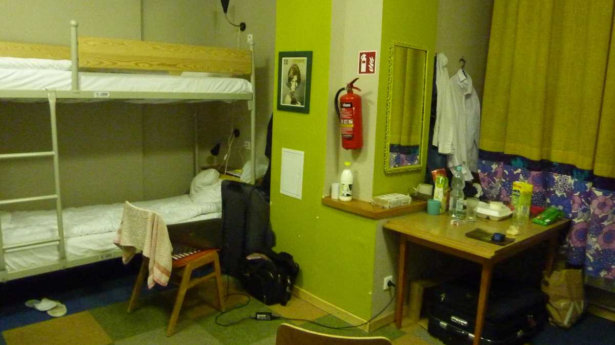 Dotările: …în camera 6 (din recepție pe hol, în dreapta, vizavi de budă și de dușurile moderne, renovate recent foarte colorat), patul numărul 4 de la parterul unuia dintre cele patru bunk bed-uri are locker, priză și veioză, standardul minim al oricărui hostel european, nu întotdeauna respectat, însă.