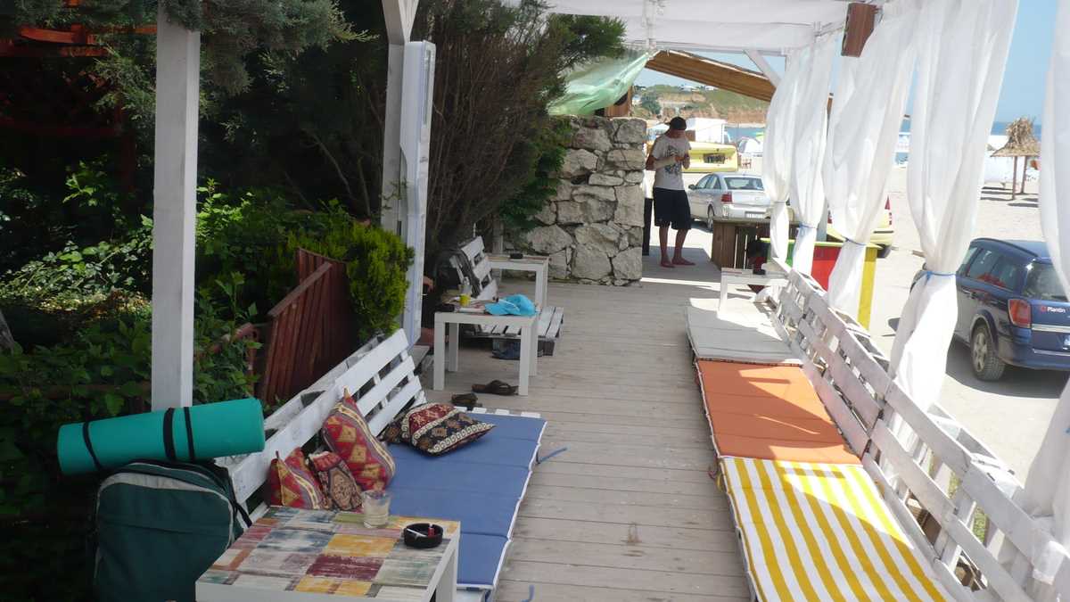 Prețurile: Relativ mari pentru România: contravaloarea în lei a 12 euro pentru un loc în dormitorul de opt paturi (ăla cu ferestrele imense care au vedere la o grădiniță de flori, gardul viu care o delimitează și umbrelele din stuf ale plajei). Dacă vrei să stai doar cu partenerul, într-o cameră privată, te costă un pic mai mult – 15 euro de om.