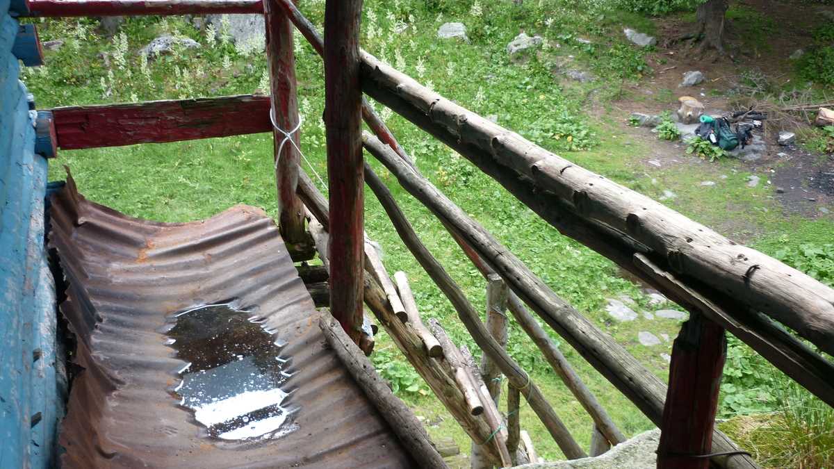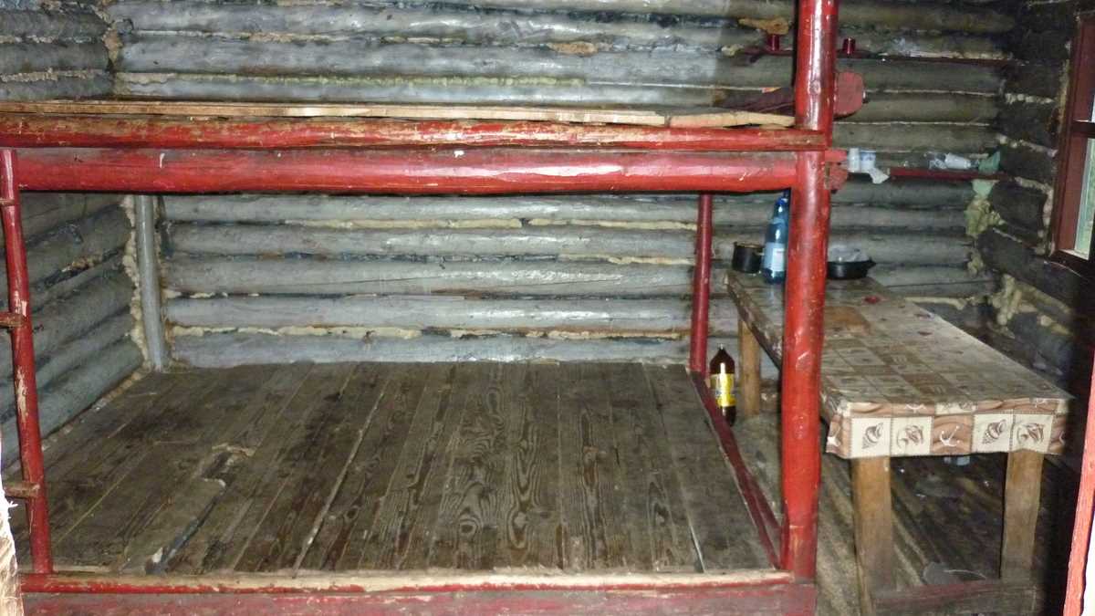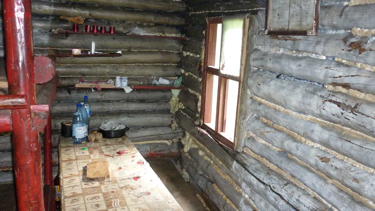 Ambianță: Intrarea se face în stil cățărare, urcînd o scară nițel cam șubredă: ține-te cu nădejde de parii-balustradă și calcă cu atenție pe prispa de la capătul treptelor (podeaua găurită a fost reparată prin acoperirea cu o bucată de tablă ondulată; m-a ținut pe mine, dar n-aș garanta că rezistă unei sarcini dinamice mai mari de 95 kg, plus rucsac de 100 l). Holul e cam vraiște și are fereastra acoperită cu folie, dar camera este bine izolată, cu spumă siliconică între bîrne. Acum o lună și ceva, la momentul vizitei noastre, în refugiu era cam mizerie, semn că ultimii chiriași au înțeles greșit îndemnul din paragraful precedent și, în loc de alimente, au donat doar ambalajele.