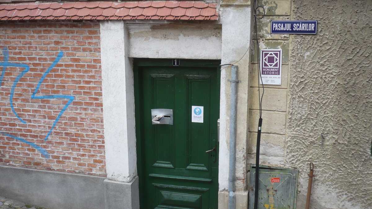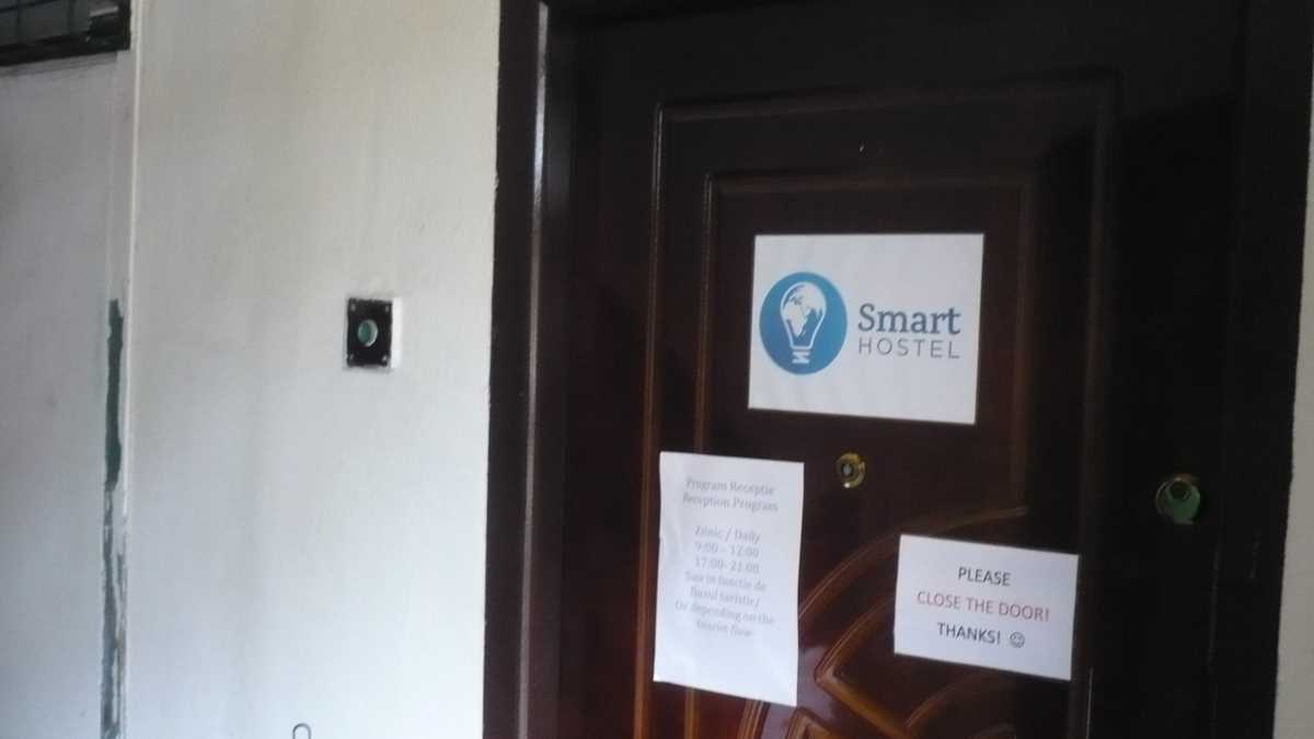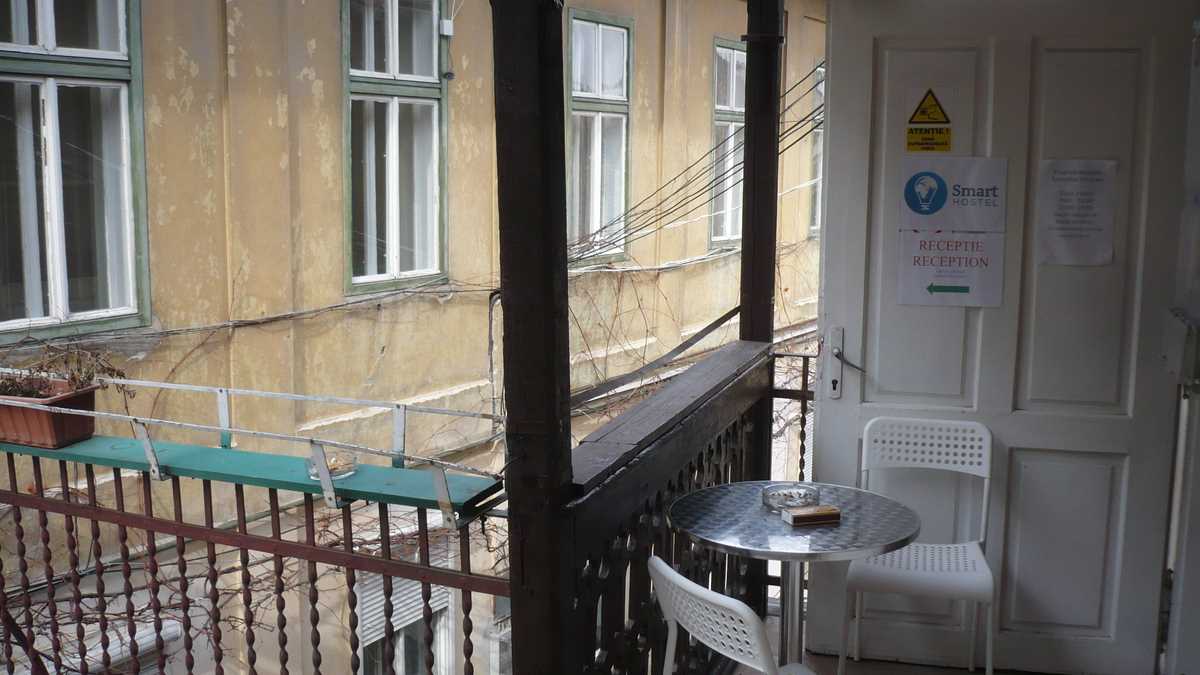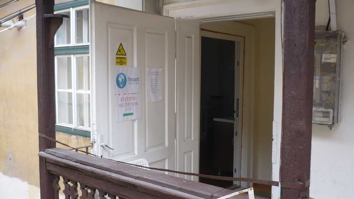 Locul: La foarte tînărul Smart Hostel Sibiu (n. Iulie 2014 – ) se ajunge relativ simplu: cum cobori din Piața Huet prin Pasajul Scărilor spre Orașul de Jos, la numărul 1, chiar în capătul treptelor, o să dai de o casă veche care are metereze de cetate în loc de gard. În timp ce suni la interfonul de pe canatul ușii încastrate în zid, te aștepți ca, în orice moment, fanta poștală să se deschidă cu un sunet metalic de vizetă de poartă de castel și cineva să-ți ceară parola. Senzația de vizită a unei fortărețe medievale continuă și după ce ți s-a deschis, pentru că pasarela din lemn dintre cele două corpuri de clădire unite la nivelul etajelor 1, pe care tocmai ai pășit, pare un vechi pod cu lanțuri coborît peste șanțul de apărare a hostelului. Înăuntru, bam, avansezi brusc în timp cîteva sute de ani, la vederea mobilierului model Ikea, catalog 2014; doar roata de tors de lîngă șemineul stilizat din recepția-spațiu comun mai amintește că, aruncînd o privire pe fereastră la pereții din cărămidă netencuită, acoperișurile de țiglă și turnul gotic de biserică, o să te întorci la decorurile de film istoric din care ai venit.