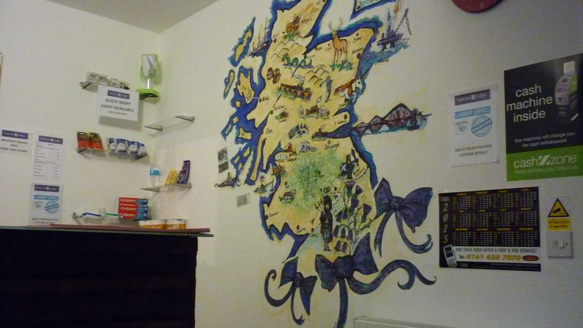 Locul: În nord-estul orașului, la extremitatea cartierului Merchant City, fostul centru al perioadei medievale, lîngă dealul cu cimitir pe vîrf Necropolis și autostrada M8. 235, Alexandra Parade, mai exact, dacă vrei să ajungi cu taxiul. Pentru că ai ceva de mers ca pieton, hostelul fiind situat cam depărtișor față de centru și la vreo jumătate de oră distanță de gară/autogară. Clădirea – fostă biserică, se pare –, arată cu totul deosebit față de orice altă cazare budget (vezi poza alăturată): o bucată de castel cărămiziu de secol XVII, din exterior; un labirint de holuri și scări acoperite cu mochetă stil tartan, postavul cadrilat din care e făcut kilt-ul, din interior.