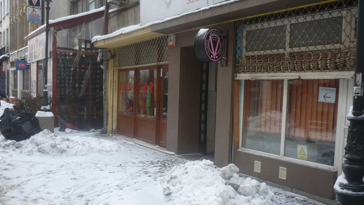 Ambianța: De Centru Vechi. Și cu asta am spus totul, nu cred că e nevoie să insist. Vecin cu zeci de cîrciumi în care muzica bubuie pînă-n zori, Vogue Hostel e deschis non-stop, așa că nu te mira dacă, pe la 3 dimineața, în timp ce duci la budă o urgență, o să te împiedici pe hol de vreun obosit urcat din stradă care a greșit ușa. Apropo de budă: în cea arondată camerei 6, un client ceva mai corpolent ar avea mari probleme să încapă. Singurul avantaj major al dimensiunilor reduse, de cabină telefonică, e că poți să faci două chestii în același timp: să stai pe tron și să te speli pe față – chiuveta îți vine undeva pe sub bărbie.