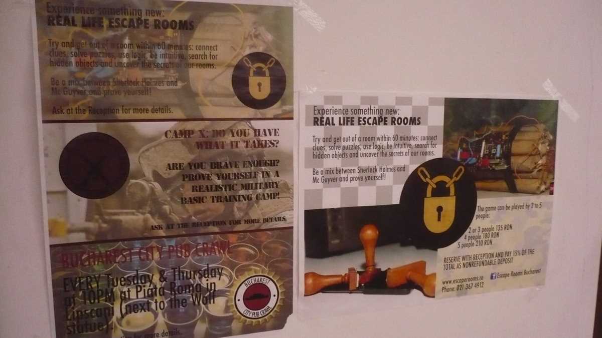 Locul: De vreo doi ani jumate, pe strada Bălcești (zece minute de mers lejer de la Unirii pe Bulevardul Coposu), la numărul 9, într-o casă veche recent renovată, își are domiciliul poate cel mai cunoscut hostel bucureștean: X. Faimos, chiar, în comunitatea backpacker-ilor care schimbă impresii pe site-urile de specialitate, pentru că 1), pe lîngă dotările oarecum standard (dormitoare, la etaj, băi cu jacuzzi, la parter, terasă interioară, între pereții lui X și ai clădirii vecine), are două camere unice, nemaiîntîlnite în lumea hostelurilor românești: niște escape rooms din care trebuie să evadezi dezlegînd șarade sau puzzle-uri, ca prin jocurile video din categoria mistery adventure, într-un interval de timp limită de maximum o oră.