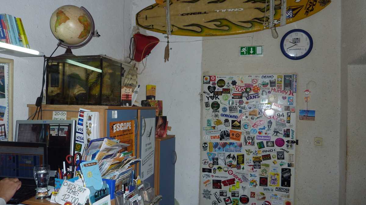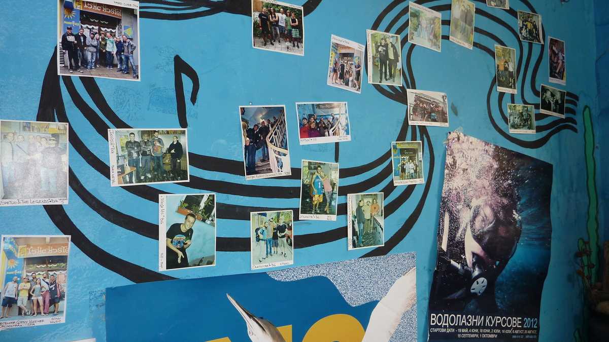 Oamenii: În seara în care, venit direct de la gară, m-am cazat în patul de sus, ăla de lîngă hartă, al camerei de două bunk bed-uri în care abia ai loc să te învîrtești (ca să umbli la locker-e, să te schimbi sau să ieși pe ușă, trebuie să stai la rînd), am fost colocatar cu Rob, englezul din Liverpool ajuns aici după un traseu Sibiu-Brașov-Bran-București, Nick, australianul cu viza de muncă în UK expirată, în drum spre avionul de Melbourne din Atena, și un asiatic mai în vîrstă care n-a intrat deloc în vorbă cu noi. Cu patronul, Stefan, un tip la vreo 30 și ceva de ani, am vorbit a doua zi dimineață, înainte de plecare. Mai mult el: mi-a povestit, mîndru, că mai are o pensiune, în Sozopol, locul natal al soției, că Yo-Ho-Hostel e partener în programul Erasmus al Universității locale și că, anul trecut, la aniversarea de zece ani a hostel-ului, a postat pe YouTube un clip cu urările de viață lungă ale foștilor clienți din toată lumea.