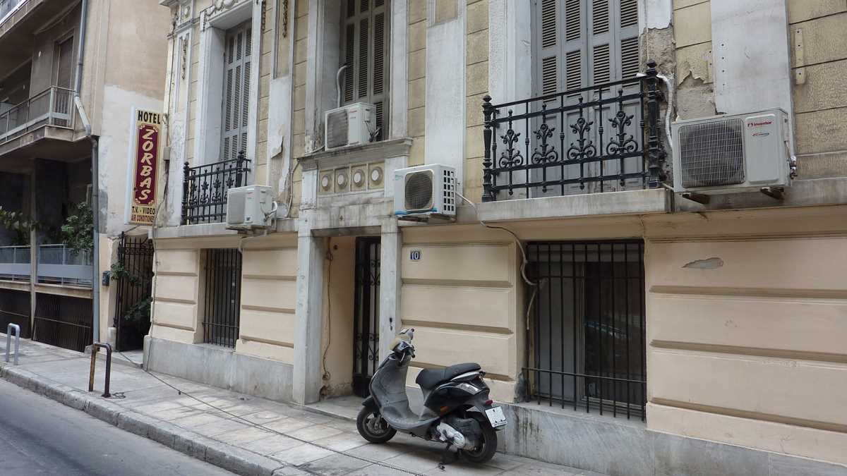 În Atena, aproape de gara centrală și la doar 10-15 minute de mers pe jos de centru, pe străduța care pleacă din colțul unei piețe-părculeț (Victoria Square), e o casă pe trei niveluri cu ferestre înalte și balcoane false aparent placată cu marmură ca un templu antic. Aici o să găsești Zorba‘s Hostel, unul dintre cele mai ieftine locuri de cazare din capitala Greciei.