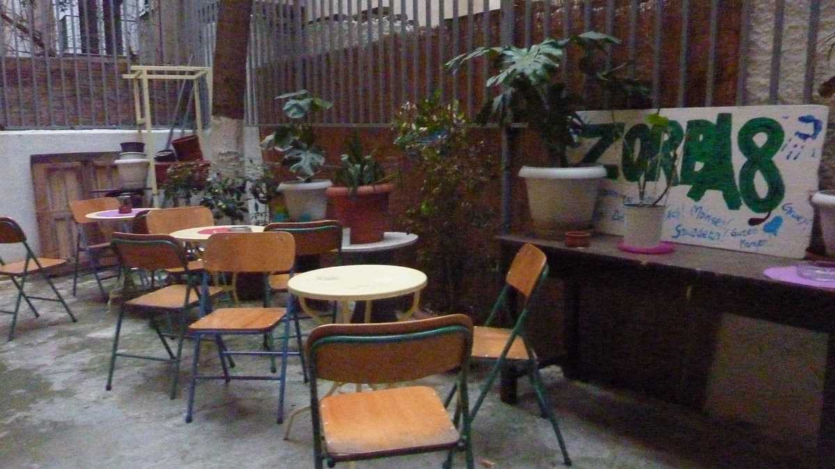 Ambianța: Care e unul profund balcanic. Nu în sensul că se dansează încontinuu sirtaki, cum ar părea, după nume, ci în sensul că e amenajat într-o casă veche exploatînd toate spațiile de cazare disponibile, destinația inițială a dormitorului meu fiind probabil cea de magazie pentru mături și detergenți. Principalul avantaj al lui Zorba este că poți face check-in oricînd, la orice oră, ușa de la intrare fiind monitorizată non-stop de către recepționerul de serviciu. Dacă ajungi noaptea tîrziu / dimineața foarte devreme în oraș, o să apreciezi foarte mult asta: un pat într-o cameră de hostel, oricît de mică, e preferabil unei bănci de aeroport sau gară.