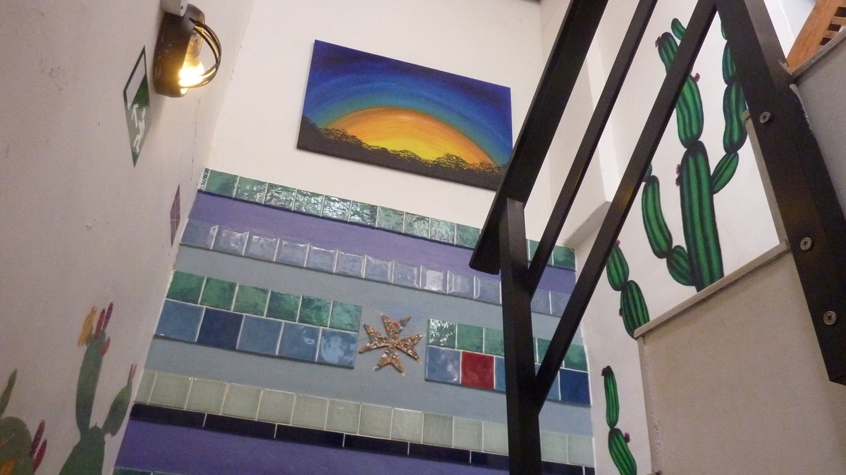 Ambianța: Așadar, din cauza spațiului limitat, atmosfera de la Hostel Malti e foarte intimă peste tot, inclusiv în cameră; noroc cu draperiile fiecărui pat care-ți permit retragerea în cochilia personală. Pentru claustrofobii care s-au cazat din greșeală aici, singura soluție ar fi să urce treptele pînă pe terasa de pe acoperiș de care-am pomenit deja, unde se deschid larg orizonturile spre o panoramă completă a orașului. Și unde există și niște șezlonguri, un balansoar și cîteva saltele pe un soi de dulapuri joase, pe care cred că se doarme mult mai confortabil și mai aerisit decît în cameră.
