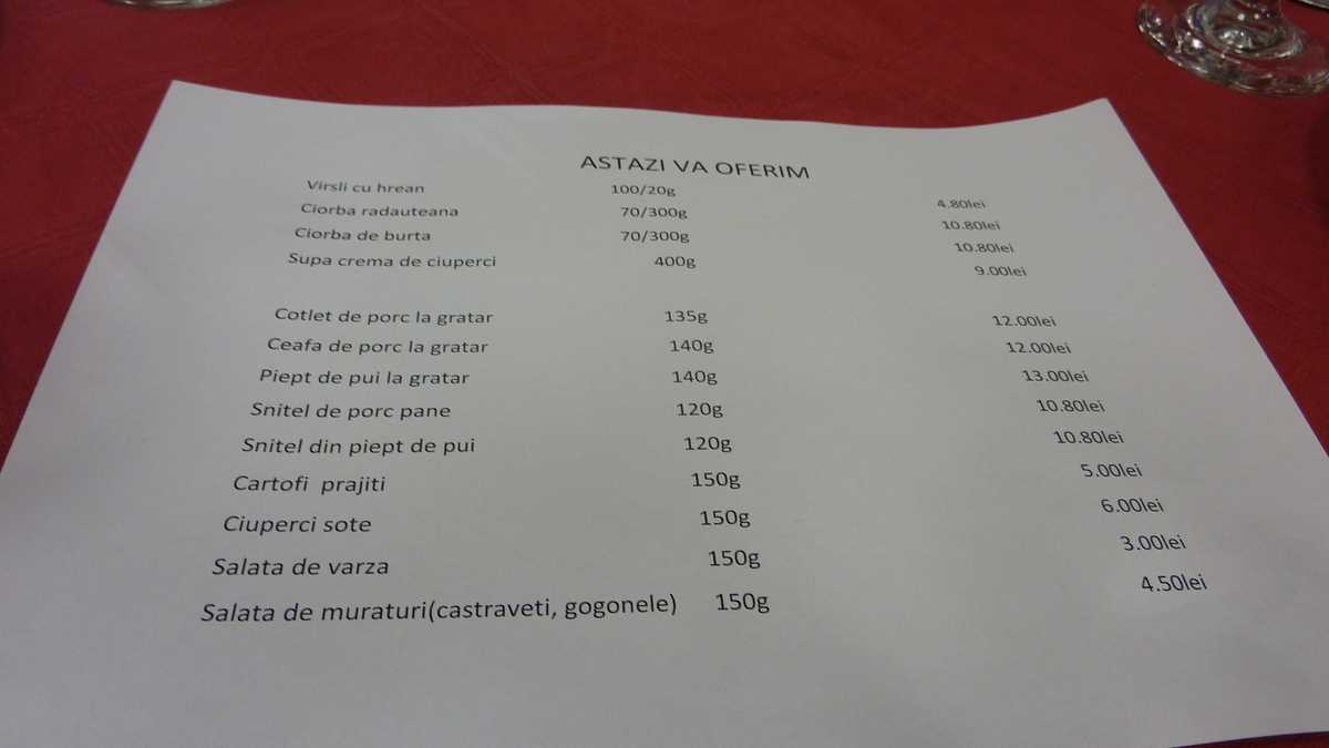 Prețurile: Fiind cazat aici pentru o noapte împreună cu colegii de la școala de ghizi, n-am plătit direct la recepție, așa că tot ce știu referitor la prețuri am citit în seara aia într-un A4. Meniul improvizat al restaurantului de la parter, din care, excluzînd șnițelele, cotletele și alte cefe cu cartofi prăjiți, ne-au atras atenția niște virșli cu hrean, un fel de crenvurști locali (4,80 lei perechea), serviți pe o farfurie moștenită din regimul ălălalt, mai bătrînă decît mulți dintre noi. Și aici ajungem la senzația pe care o ai în hotel,…