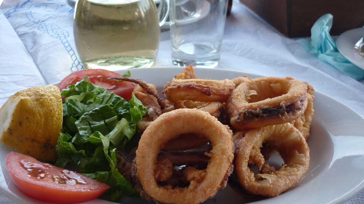 Revenind la masă odată cu comanda, să vă mai spun că din farfurii s-a mîncat, pe acorduri de sirtaki, mai mult pește, calamari, caracatiță sau scoici (cu excepția souvlaki-ului de pui care a aterizat în fața mea) și s-a băut vin alb și bere Fix Hellas. Din partea casei, au venit două platouașe cu sărmăluțe în foi de viță, lîngă un fel de merdenele cu feta și spanac, și încă două carafe de vin. Plus un lichior de trandafiri, la plecare, cînd a ieșit din bucătărie ca să facă poze cu noi însăși Kirața, vedeta panoului cu fotografii din fața tavernei în care mai apar cîntăreți, fotbaliști și actori mai mult sau mai puțin cunoscuți. După cîte poze are Raging Bull cu celebra bucătăreasă, am avut senzația că am mîncat la mama lui De Niro.