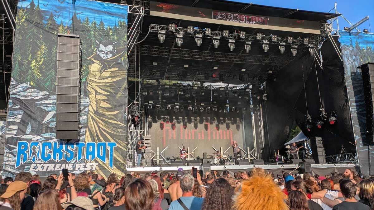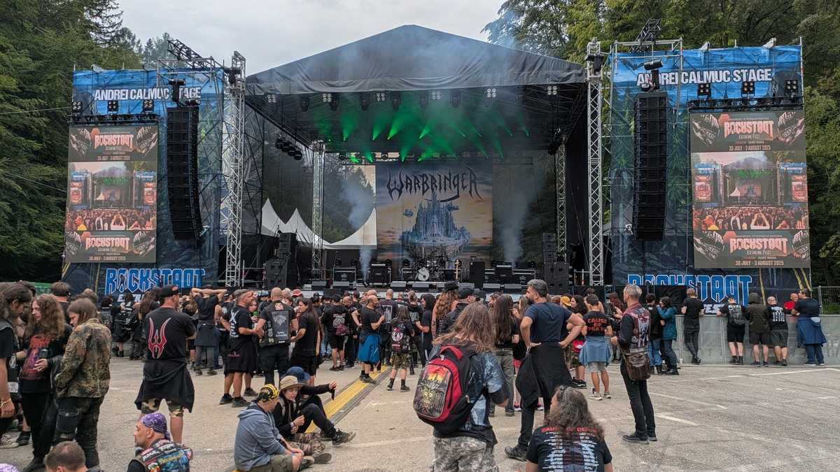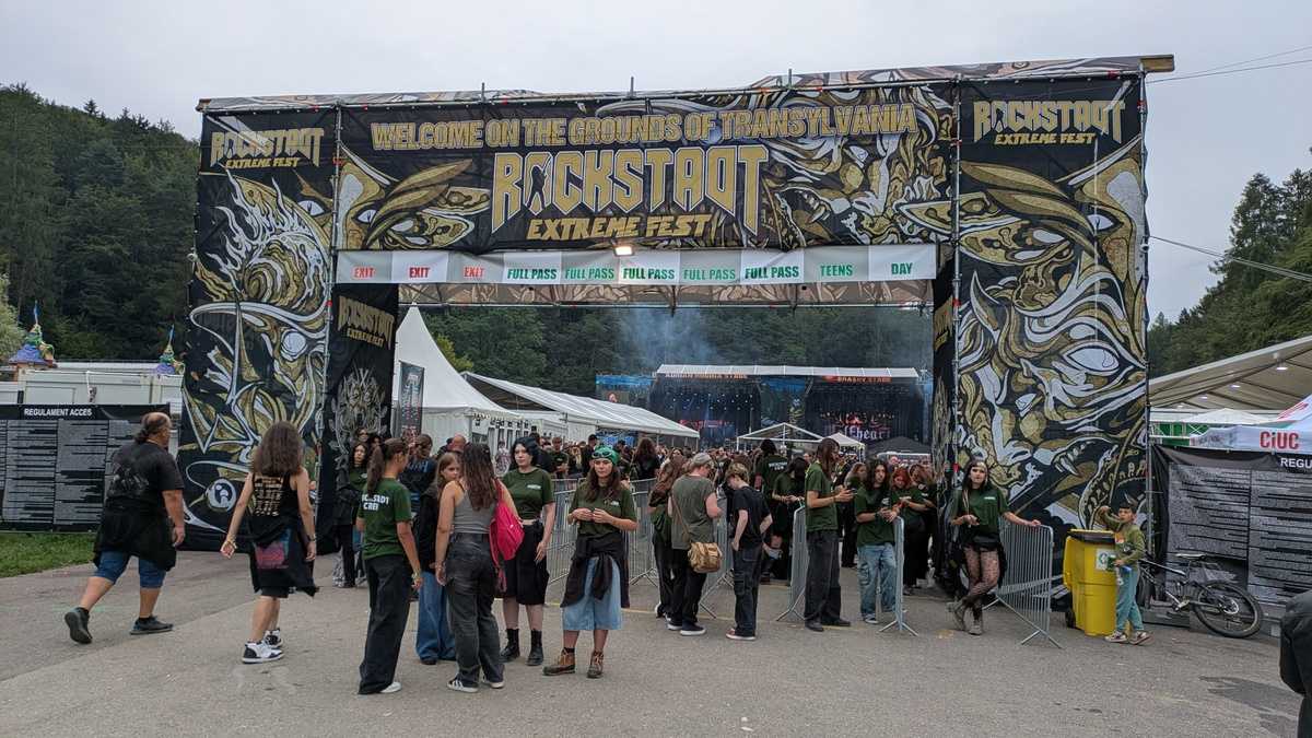 În fața scenei „Andrei Calmuc“, cea din capăt, din spatele celor două principale, „Brașov“ și „Adrian Rugină“, așteptînd să înceapă concertul Warbringer, un cuplu la vreo 35-40 de ani își desfășoară, mîndri, drapelele albastru-alb-roșii pe care se citește clar originea și destinația: From Costa Rica to Rockstadt Extreme Fest 2025, Rîșnov Fortress, On the grounds of Transylvania. „Am zburat 11 ore pînă la Madrid, patru ore pînă la București, apoi alte cîteva ore, pe tren, pînă la Brașov și, în sfîrșit, am ajuns aici.“ Prima dată în România? „Nu, a doua oară. Anul trecut am participat pentru prima dată la Rockstadt Extreme Fest, împreună cu prieteni din Mexic și Chile. Acum am venit cu soția. Sîntem aici pentru festival, dar și pentru o vacanță în Europa. E un loc nemaipomenit, oamenii sînt foarte amabili… Un festival grozav.“ Pentru ce trupe ați venit? „Emperor au fost super, Soen – metal progresiv, Gojira. Mi-au plăcut și Demolition Hammer, și, desigur, Obituary, death metal din Florida.“ Ceva pălincă ați încercat? „Da, e foarte tare.“