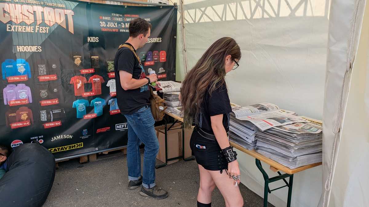La coadă la bere, în spatele meu, un tip cu maioul oficial Rockstadt Extreme Fest 2025 și pălărie de pescar. E Terence, din Canada. Prima dată în România? „Da.“ Cum ai auzit de festival? „Urmăresc trupa Wind Rose, care n-a ajuns încă în America. Am văzut că vor cînta la un festival european și am venit să-i văd, pentru că sînt incredibili. Aici, în Transilvania, la poalele Munților Carpați, lîngă Cetatea Rîșnov, un loc cu multă istorie… Trebuia să fiu aici.“ Să înțeleg că ești venit pentru trupa favorită? „Trupa mea favorită? Nu, nu pot răspunde la întrebarea asta. Există atît de multă muzică bună de ascultat în prezent… E un moment foarte bun să fii fan metal.“ Ai gustat ceva mîncare sau băutură românească? „Da, berea e foarte bună, Ursus, și am băut și pălincă, e foarte tare.“ Părerea ta despre festival? „E grozav, a crescut mult și a devenit atît de mare încît, la anu’, se va muta lîngă Brașov.“ Vii și anul viitor? „Dacă pot, da.“