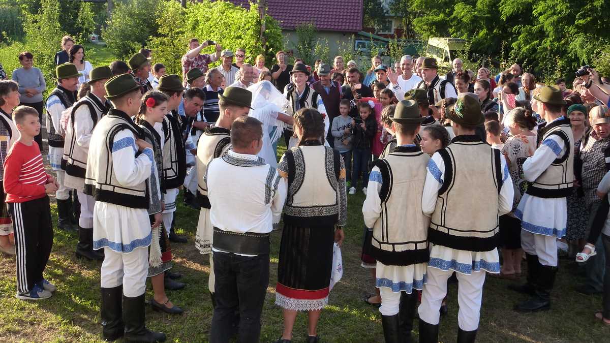 Infotrip-ul s-a încheiat oficial duminică seară, în curtea gazdei noastre. Inimosul primar al Dolheștiului, care ne-a primit cu colac și sare în căminul cultural (cel mai mare cămin rural din țară), a dat startul unei petreceri cîmpenești la care a fost invitat tot satul. MC și suflet al petrecerii a fost nea Gheorghiță, care a cîntat, a dansat, a prezentat la microfon ritualul moldovenesc al nunții cu personaje-surpriză, ansamblul de dansuri populare, copiii talentați, virtuozi la voce sau vioară, și, în final, i-a invitat pe toți cei prezenți la o cină moldovenească ca pe vremea lui Ștefan: sarmale, brînză cu smîntînă, plăcinte “poale-n brîu”, afinată sau streșinică, vinul din soiul local de strugure care face boltă pe lîngă casă.