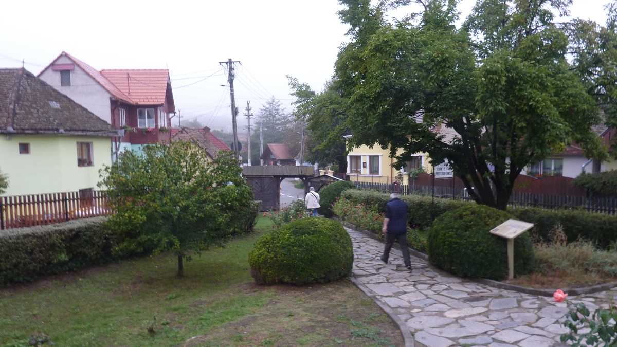 După aprinderea lumînărilor care a marcat sfîrșitul reculegerii, pînă la plecarea autocarului, a fost timp să mă învîrt nițel prin sat, pe traseul fîntîna centrală – podul peste pîrîu – ulițele adiacente celei principale, printre case cochete, cu flori pe garduri, multe dintre ele menționate pe panoul de onoare din fața bisericii, avizierul cu ofertele de cazare și contactele a vreo 25 de pensiuni agroturistice. Și să-mi imaginez celebra nuntă tradițională de Sibiel, organizată special aici înainte de pandemie, pentru turiștii deveniți pentru o zi mirii, nașii sau nuntașii petrecerii cu toate ritualurile, după obiceiul locului.